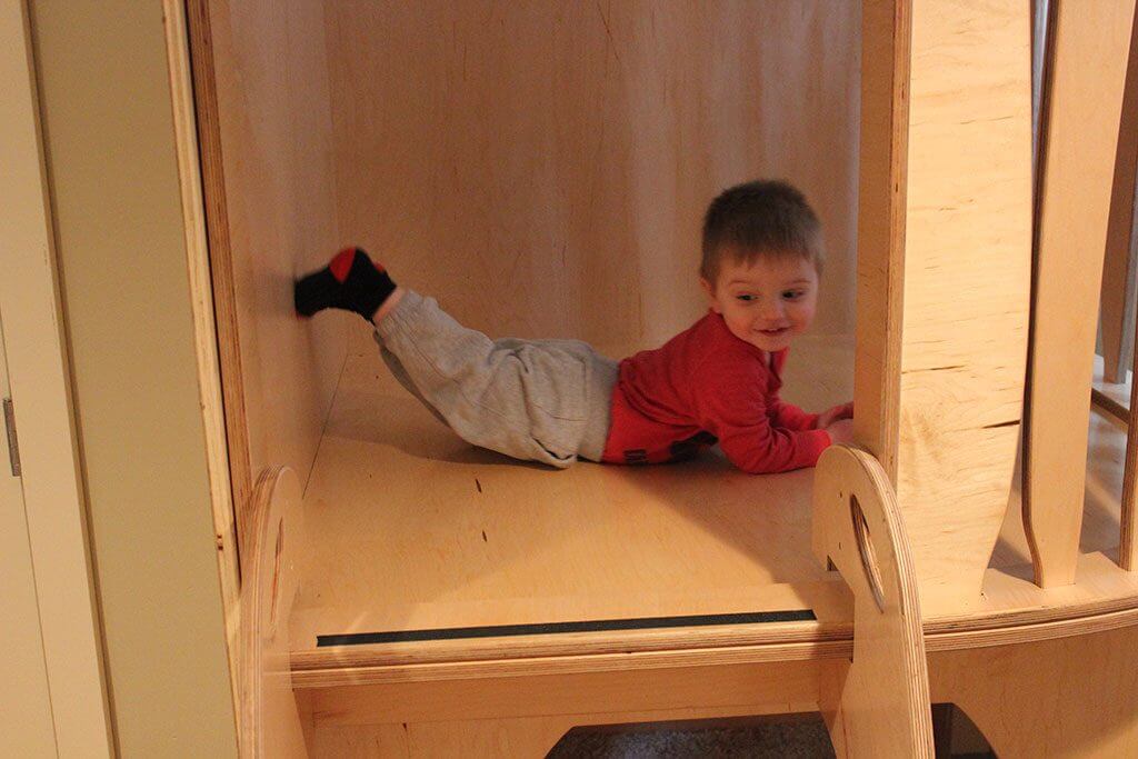 It’s funny how a simple little change is noticed so quickly and how it can inspire and spiral play and learning in entirely new directions. The children were drawn in almost immediately. They crawled in and around, laying, rolling, resting, rubbing against the rug. They lay on their backs, feet in the air, exploring from a new perspective. They playfully peeked at each other and hung from the sides, swinging “like a monkey”, they said.