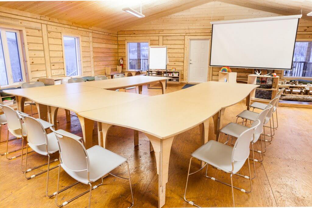 Natural Pod furniture reflected the philosophy of learning they embrace at the Preserve. Rather than creating a high energy, brightly coloured space we were able to create a space that mirrored the natural outdoor experience – calm, reflective, tactile with room for creative, unstructured (and of course, some high energy) play. They wanted to create a space that said: “this is for you”. It’s amazing how a low table has kids feeling right at home, but also how it helps the adults in the room to focus on what’s important! Adjustable tables have enabled them to welcome audiences of all sizes and ages. Their space is constantly changing – from school programs to nature camps and from training sessions to weddings. Natural Pod furniture helps make every one of those transitions gracefully. Almost everybody who has walked into the Yukon Wildlife Preserve’s Learning Centre have said “Wow, what an amazing space.”