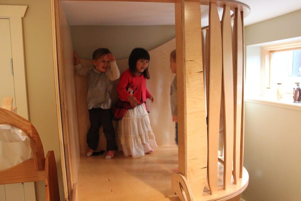 After many months of having the loft in our space, this was an entirely new discovery. I love the way that fresh eyes bring about a new perspective. Since that first time, I now notice (about once a day) various toys (usually trucks) wedged between the slats of the loft and sticking out the side. It makes me smile and I know that Mack is still experimenting and working on discovering how the shapes and space work, move and fit together. I can’t wait to see where the children go next!