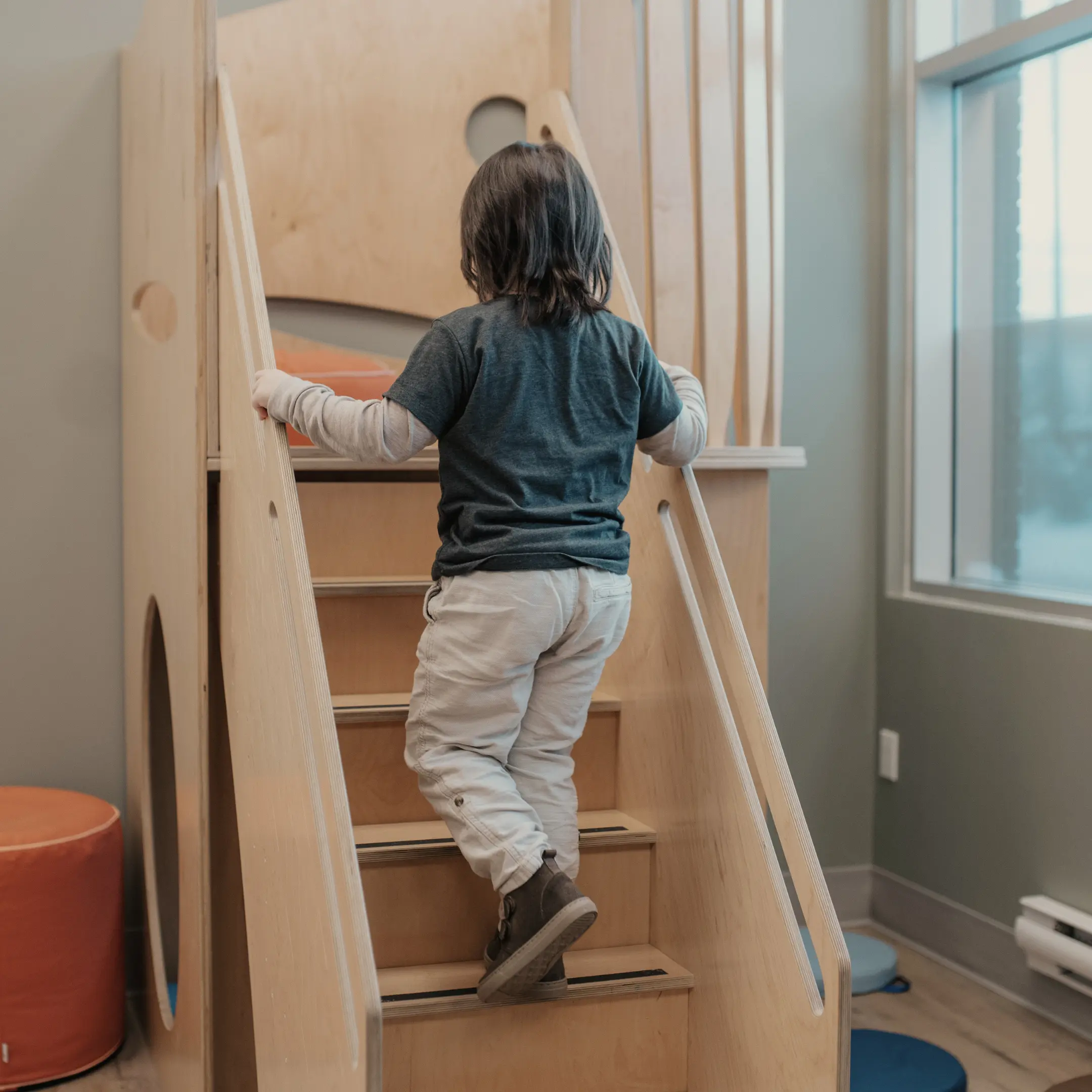 We also offer a special Infant Loft with a long shallow ramp on one side, and 2 steps on the other. Designed for those learners who may not be fully walking yet.
